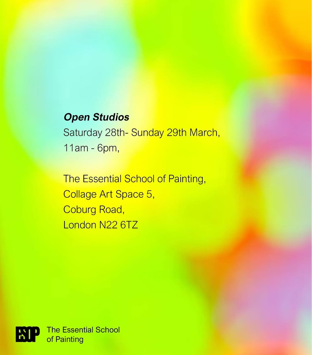All are welcome to visit the Advanced Painting artists in their studios at the Essential School of Painting at OPEN STUDIOS weekend on the 28-29th March 11am – 6pm.